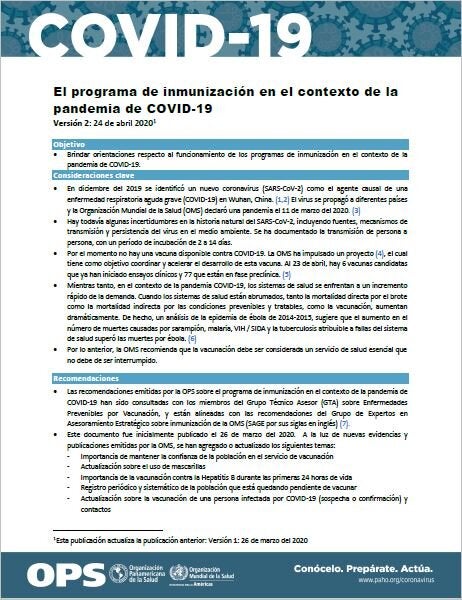 El programa de inmunización en el contexto de la pandemia de COVID-19, versión 2 (24 de abril del 2020)