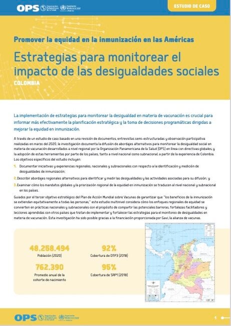 Promover la equidad en la inmunización en las Américas. Estrategias para monitorear el impacto de las desigualdades sociales: Colombia