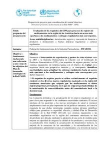 Título: Evaluación de los requisitos del CPP para procesos de registro de medicamentos en la región de las Américas hacia un acceso más oportuno a los medicamentos y enfoques regulatorios más convergentes. Originador: Federación Latinoamericana de la Industria Farmacéutica - FIFARMA |