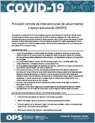 Enfermedad por el Coronavirus (COVID-19) Salud Mental Enfermedades no transmisibles Depresión Prevención del suicidio Salud Mental y Apoyo Psicosocial en Emergencias (SMAPS) Otras publicaciones Enfermedades no transmisibles y salud mental (NMH) Salud Mental y COVID-19