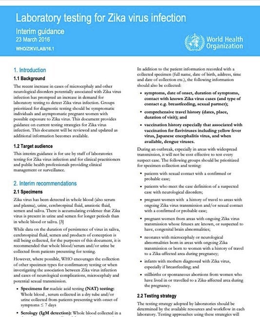 Pruebas de laboratorio para la infección por el virus del Zika. Orientación provisional - 23 de marzo de 2016 (sólo en inglés)