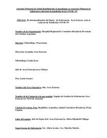A partir de la declaración Nacional y provincial de Pandemia COVID19 nuestro servicio se vio en la necesidad de Reestructurarse debido al panorama Epidemiológico reinante, se replanteo la distribución y funcionalidad de los CAPS de manera tal que los equipos de Salud se mantuvieran lo más completo posibles, a fin de dar cobertura a los distintos grupos poblacionales que se encuentran bajo Programas Vigentes. Para ello se decidió abrir 9 CAPS, en función del recurso Humano Disponible y elegidos Estratégicamente a fin de mantener una amplia área de cobertura en los Barrios de Zona Norte y Zona Sur, evitando que la gente se movilice innecesariamente y mantenga la cuarentena establecida según Decreto Presidencial Nº 260/20 del 12 de marzo del 2020 y Decreto Provincia del Chubut Nº 314/20 , dándose amplia difusión a través de las Redes Sociales, Radio y televisión de Lugares, días y horarios de atención de los mismos, continuándose hasta la fecha con un CAPS como Centro de Recepción para Hisopados de COVID19 y el resto de los CAPS establecidos con doble circulación y dos vacunatorio uno en el Hospital de referencia y otro en un barrio populoso de Zona Sur.