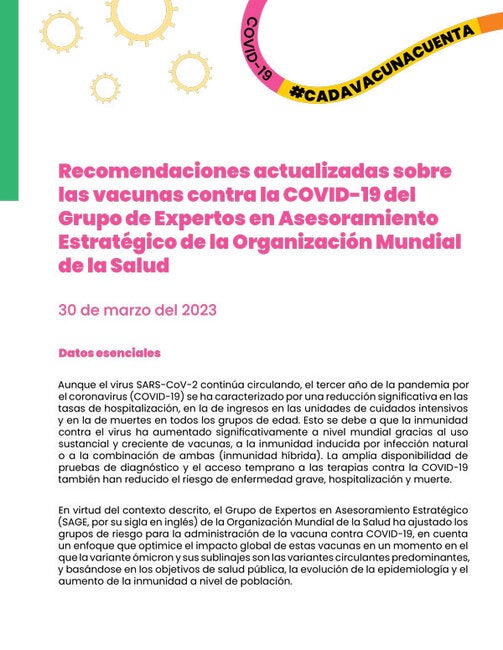 Recomendaciones actualizadas sobre las vacunas contra la COVID-19 del Grupo de Expertos en Asesoramiento Estratégico de la Organización Mundial de la Salud, 30 de marzo del 2023