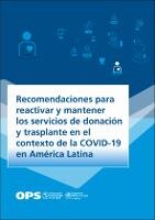 La pandemia de COVID-19 ha tenido unos efectos sin precedentes en la población, las economías y los servicios de salud de todo el mundo. Pese a las medidas adoptadas para mitigar su impacto, las consecuencias para los sistemas de salud se han hecho evidentes; por ejemplo, en América Latina y el Caribe, donde la actividad de donación y trasplante se ha reducido de manera considerable y, en algunos países, se ha interrumpido por completo. Las presentes recomendaciones de la Organización Panamericana de la Salud tratan de promover el mantenimiento de los servicios de donación y trasplante aun en el curso de la pandemia de COVID-19. Además, plantean sugerencias que puedan tenerse en cuenta en otras situaciones de emergencia de salud o pandemias en las que se requieran medidas de gestión y prevención del riesgo de infecciones. Esta publicación está dirigida a ministerios de salud, organizaciones, organismos o programas nacionales de donación y trasplantes, así como a responsables de la toma de decisiones en este ámbito, profesionales de la salud y otros interesados en la donación y trasplante. Cada país puede adaptar estas recomendaciones a su contexto y ajustarlas periódicamente de acuerdo con la mejor evidencia científica disponible y la experiencia adquirida desde el inicio de la pandemia.
