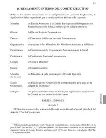 Este es un extracto (páginas 68-78) de los Documentos Básicos de la Organización Panamericana de la Salud, Decimonovena edición, publicación que recoge los documentos básicos relacionados con la gobernanza de la Organización Panamericana de la Salud, incluido el Código Sanitario Panamericano; las constituciones de la Organización Panamericana de la Salud y de la Organización Mundial de la Salud; el Reglamento Interno de la Conferencia Sanitaria Panamericana, del Consejo Directivo y del Comité Ejecutivo; y el Reglamento Financiero de la Organización Panamericana de la Salud. Los documentos básicos son una herramienta valiosa para una amplia gama de usuarios, en particular los administradores de salud pública y las políticas en organizaciones gubernamentales, intergubernamentales y no gubernamentales.