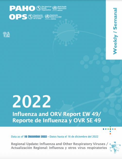 América del Norte: la actividad de la influenza estuvo moderada en la subregión. Predominó influenza A(H3N2), con circulación concurrente de A(H1N1)pdm09 y B/Victoria. La actividad del SARS-CoV-2 fue moderada y continúa en aumento, mientras que la actividad del VRS estuvo moderada pero con tendencia decreciente. En Canadá, la actividad de la influenza estuvo elevada y la mayoría de los indicadores de la vigilancia estuvieron por encima de los niveles esperados. En México, la actividad de la influenza continuó por encima de lo esperado para este período, con los indicadores de vigilancia en niveles de baja intensidad. Se reportó una actividad elevada de la influenza en los Estados Unidos, con una tasa de hospitalización acumulada, asociada a la influenza, más alta que la tasa de hospitalización acumulada más alta observada en la semana 49 (2010-21). Continúa elevada la actividad del VRS pero con una tendencia decreciente.