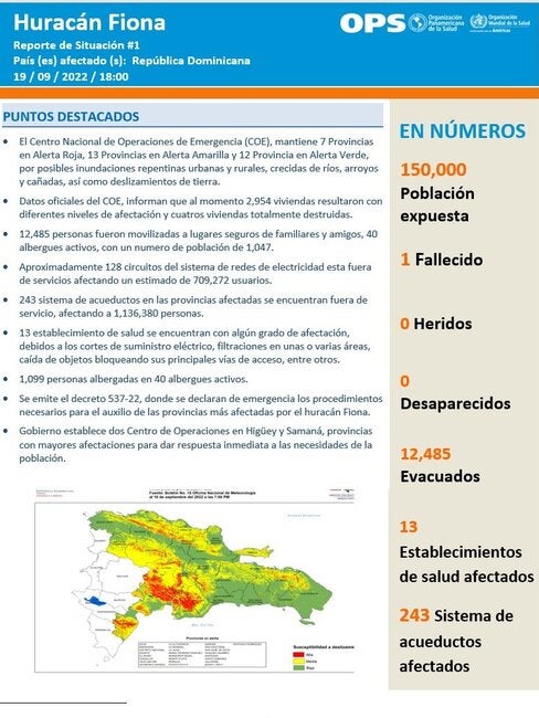 Reporte de Situación-República Dominicana-Datos reportados tras huracán Fiona- 20 septiembre 2022
