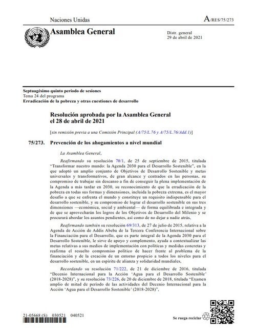 Resolución 75/273: Prevención de los ahogamientos
