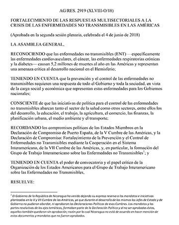 Resolución de la OEA - Fortalecimiento de las respuestas multisectoriales a la crisis de las enfermedades no transmisibles en las Américas