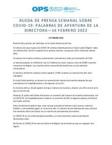 Rueda de prensa semanal sobre COVID-19: Palabras de apertura de la Directora, 16 de febrero de 2022
