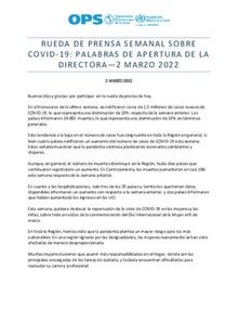 Rueda de prensa semanal sobre COVID-19: Palabras de apertura de la Directora, 2 de marzo de 2022