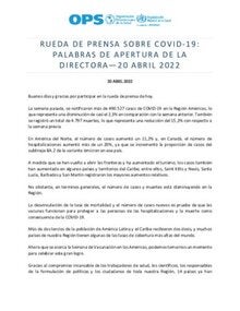 Rueda de prensa semanal sobre COVID-19: Palabras de apertura de la Directora, 20 de abril de 2022