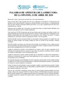 Rueda de prensa semanal sobre COVID-19: Palabras de apertura de la Directora, 21 de abril, 2020