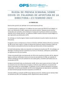 Rueda de prensa semanal sobre COVID-19: Palabras de apertura de la Directora, 23 de febrero de 2022