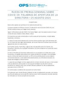 Rueda de prensa semanal sobre covid-19: Palabras de apertura de la Directora, 25 de agosto de 2021