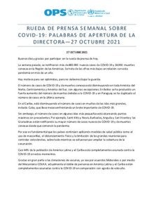 Rueda de prensa semanal sobre COVID-19: Palabras de apertura de la Directora, 27 de octubre de 2021