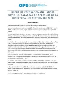 Rueda de prensa semanal sobre COVID-19: Palabras de apertura de la Directora, 29 de septiembre de 2021