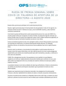 Nuestra región permanece bajo la fuerte presión de esta pandemia. Hasta el 3 de agosto, las Américas tenían más de 9.7 millones de casos y más de 365.000 muertes, y estos números continúan aumentando.