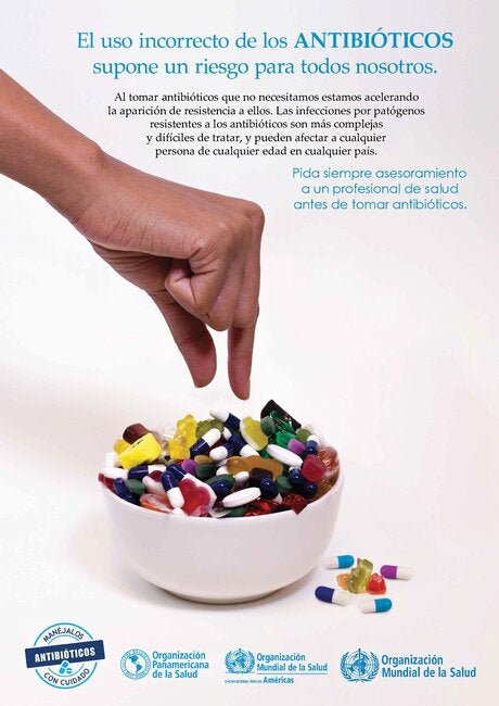 Semana Mundial de Concientización sobre el Uso de los Antibióticos 2017: Afiche. El uso incorrecto de los antibióticos pone en riesgo... JPG vertical