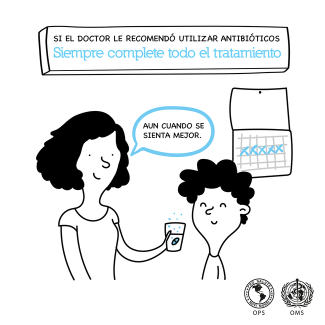 Semana Mundial de Concientización sobre el Uso de los Antibióticos 2017: Postal para redes sociales. "Siempre complete todo el tratamiento"