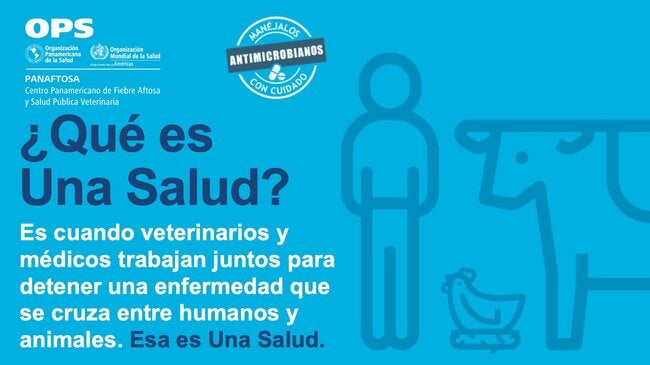 Semana Mundial de Concientización sobre el Uso de los Antimicrobianos 2020: Postal Una Salud "¿Qué es Una Salud?" (veterinarios y médicos)