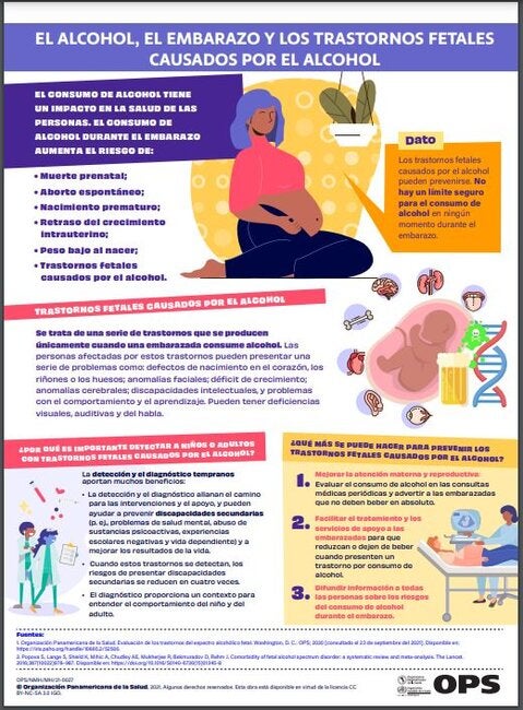 Esta hoja informativa resume los riesgos del consumo de alcohol durante el embarazo. Explica el concepto de trastornos fetales causados por el alcohol y enumera los problemas que pueden causar, por ejemplo, defectos de nacimiento, anomalías cerebrales y problemas de comportamiento y aprendizaje. La hoja informativa enfatiza la importancia de prevenir los trastornos del espectro alcohólico fetal tanto en niños como en adultos, y explica cómo hacerlo.