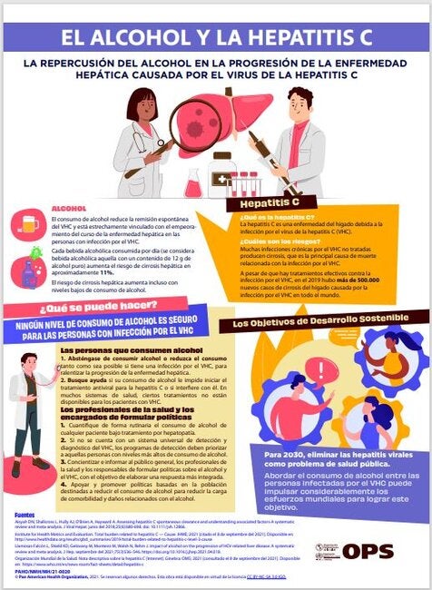 Esta hoja informativa describe brevemente la hepatitis C y los riesgos relacionados con el virus de la hepatitis C (VHC) —principalmente la cirrosis hepática— y resume los efectos negativos del consumo de alcohol en el VHC y la cirrosis hepática. Asimismo, indica lo que pueden hacer quienes consuman alcohol y tengan hepatitis C y concluye con algunas recomendaciones para los profesionales sanitarios y los responsables políticos. La hoja informativa también ofrece una lista de referencias.