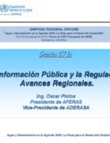 Simposio Regional OPS/OMS 2016: La información pública y la regulación. Avances regionales. Ing. Oscar Pintos; Presidente de AFERAS / Vice-Presidente de ADERASA