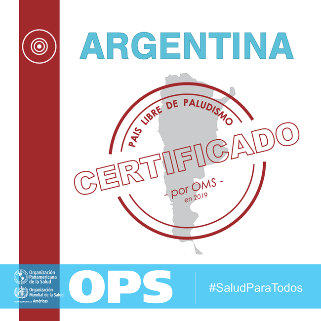 Tarjeta para Redes Sociales: Argentina país libre de paludismo por OMS en 2019