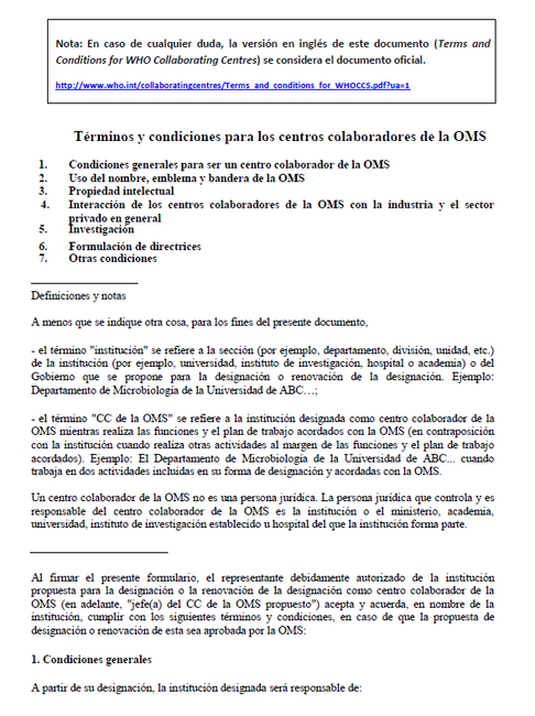 Materiales de referencia para Centros Colaboradores de la OMS Directrices Centros Colaboradores de la OPS/OMS