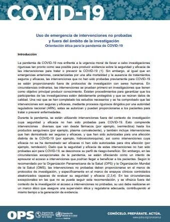 Uso de emergencia de intervenciones no probadas y fuera del ámbito de la investigación: Orientación ética para la pandemia de COVID-19