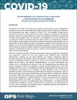 La pandemia de COVID-19 nos enfrenta a la urgencia moral de llevar a cabo investigaciones rigurosas tan pronto como sea posible para producir evidencia sobre la seguridad y eficacia de las intervenciones para tratar o prevenir la COVID-19. Sin embargo, al igual que en emergencias anteriores, caracterizadas por una alta mortalidad y la ausencia de tratamientos seguros y eficaces, las intervenciones que no han sido probadas previamente para la COVID-19 se están proporcionando fuera de protocolos de investigación con seres humanos. Dado que la seguridad y eficacia de estas intervenciones no han sido probadas, se desconoce su perfil de riesgo-beneficio. Sin embargo, en las circunstancias excepcionales de la pandemia, se están ofreciendo como un intento de apresurar el acceso a intervenciones que podrían llegar a beneficiar a los pacientes. Según lo recomendado por la Organización Panamericana de la Salud y la Organización Mundial de la Salud, las intervenciones no probadas deben proporcionarse en el marco de protocolos de investigación, y específicamente en el marco de ensayos clínicos controlados aleatorizados capaces de evaluar su seguridad y eficacia.