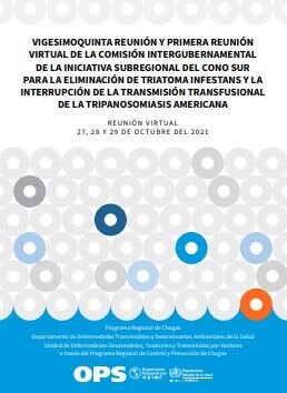 En este informe figuran las recomendaciones, conclusiones y resoluciones de la reunión celebrada por la Comisión Intergubernamental de la Iniciativa Subregional del Cono Sur para la Eliminación de Triatoma infestans y la Interrupción de la Transmisión Transfusional de la Tripanosomiasis Americana los días 27 a 29 de octubre del 2021. Asimismo, incluye una lista de los avances que ha habido en cada país participante y enumera las metas nacionales en materia de vigilancia y control vectorial de triatominos en zonas endémicas.