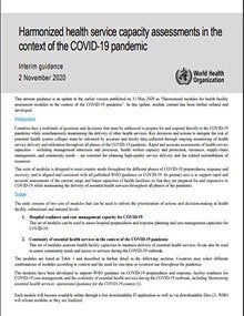 Documento elaborado por la OMS que detalla dos módulos para el apoyo de evaluaciones rápidas y precisas de las capacidades actuales, aumentadas y futuras de los establecimientos de salud de manera que estén preparados para el covid-19, mientras al mismo tiempo se mantiene la provisión de servicios médicos esenciales. También disponible esta la herramienta “Evaluación rápida de la continuidad de los servicios esenciales de salud durante la pandemia de COVID 19”.