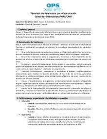 Consultor Internacional para apoyo en desarrollo de capacidades y fortalecimiento estructural de la gestión y calidad de los servicios de salud de Panamá, enfocado en primer nivel de atención y el desarrollo de Redes Integradas de Servicios (RISS)