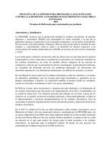 Términos de Referencia para contrato por producto en comunicación de riesgo: Iniciativa de la OPS/OMS para proteger la salud infantil contra la exposición a los residuos electrónicos en Panamá 2021
