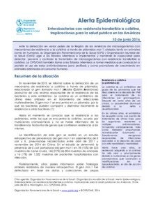 10 de junio de 2016: Enterobacterias con resistencia transferible a colistina. Implicaciones para la salud publica en las Américas - Alerta Epidemiológica