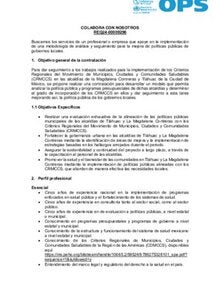 OPS México, Terminos de referencia: Contratación de profesional o empresa para apoyo de implementación de metodología de análisis y seguimiento para mejora de políticas públicas de gobiernos locales (REQ24-00009296)