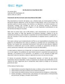 Día Mundial Salud Mental. Presentación Plan de Acción sobre Salud Mental 2015-2020