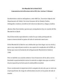 Día Mundial de la Salud 2013 - Comentarios de la Directora de la OPS, Dra. Carissa F. Etienne