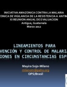 Lineamientos para prevención y control de malaria en poblaciones en circunstancias especiales. Mayira Sojo-Milano. 2012