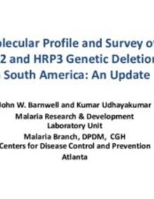 Molecular Profile and Survey of HRP2 and HRP3 Genetic Deletions in South America: An Update John W. Barnwell and Kumar Udhayakumar. Malaria Research & Development Laboratory Unit. CDC- Atlanta