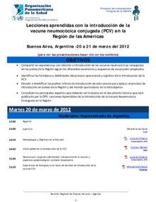 Agenda - Lecciones aprendidas con la introducción de la vacuna neumocócica conjugada (PCV), Marzo 2012
