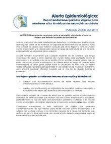 Alerta Epidemiológica: Recomendaciones para los viajeros para mantener a las Américas sin sarampión y rubéola