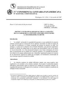 “Política y Estrategia Regional para la Garantía de la Calidad de la Atención Sanitaria, incluyendo la Seguridad del Paciente” CSP 27/16