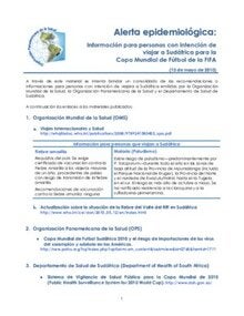 Alerta Epidemiológica: Información para viajeros a Sudáfrica para la Copa Mundial (13 mayo 2010)