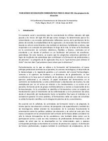 Plan básico de educación farmacéutica para el siglo XXI