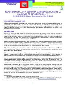 Respondiendo a una Segunda Emergencia Durante la Pandemia de Influenza (H1N1). Recomendaciones para Gerentes de Servicios de Salud. Documento técnico 6