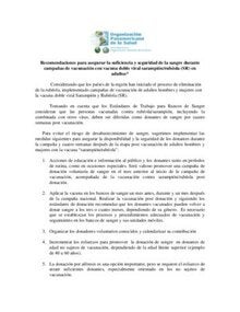 Recomendaciones para asegurar la suficiencia y seguridad de la sangre durante campañas de ....