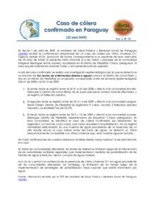 22 de abril del 2009: Cólera – caso en Paraguay